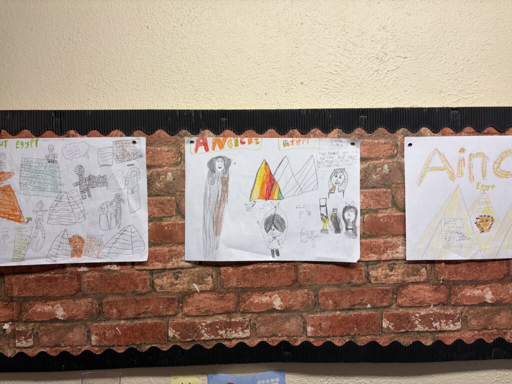In 3rd Class, the children have been learning about Ancient Egypt and comparing it with Egypt today. They explored famous landmarks such as the pyramids and the Sphinx and learned about the important role of pharaohs in Ancient Egyptian life, including the famous Queen Cleopatra. The children discovered how the River Nile was vital for farming, travel, and everyday life in both ancient and modern times. They also learned about cities in Egypt today, such as Cairo and Alexandria, as well as famous places and monuments across the country such as Mount Sinah. To finish, the children explored some popular Egyptian foods and enjoyed learning how food and daily life in Egypt have changed over time!