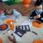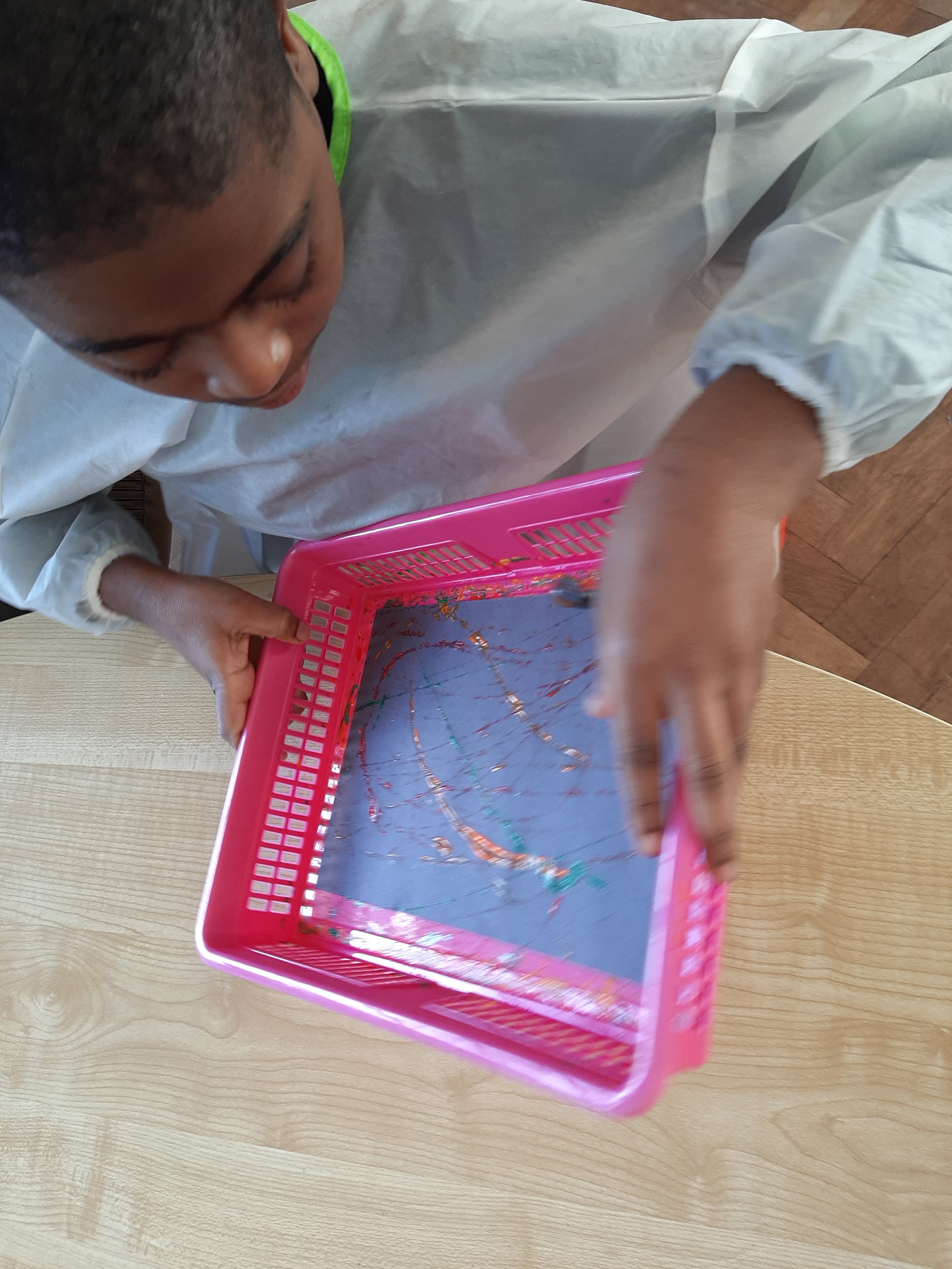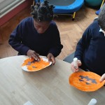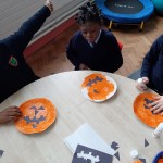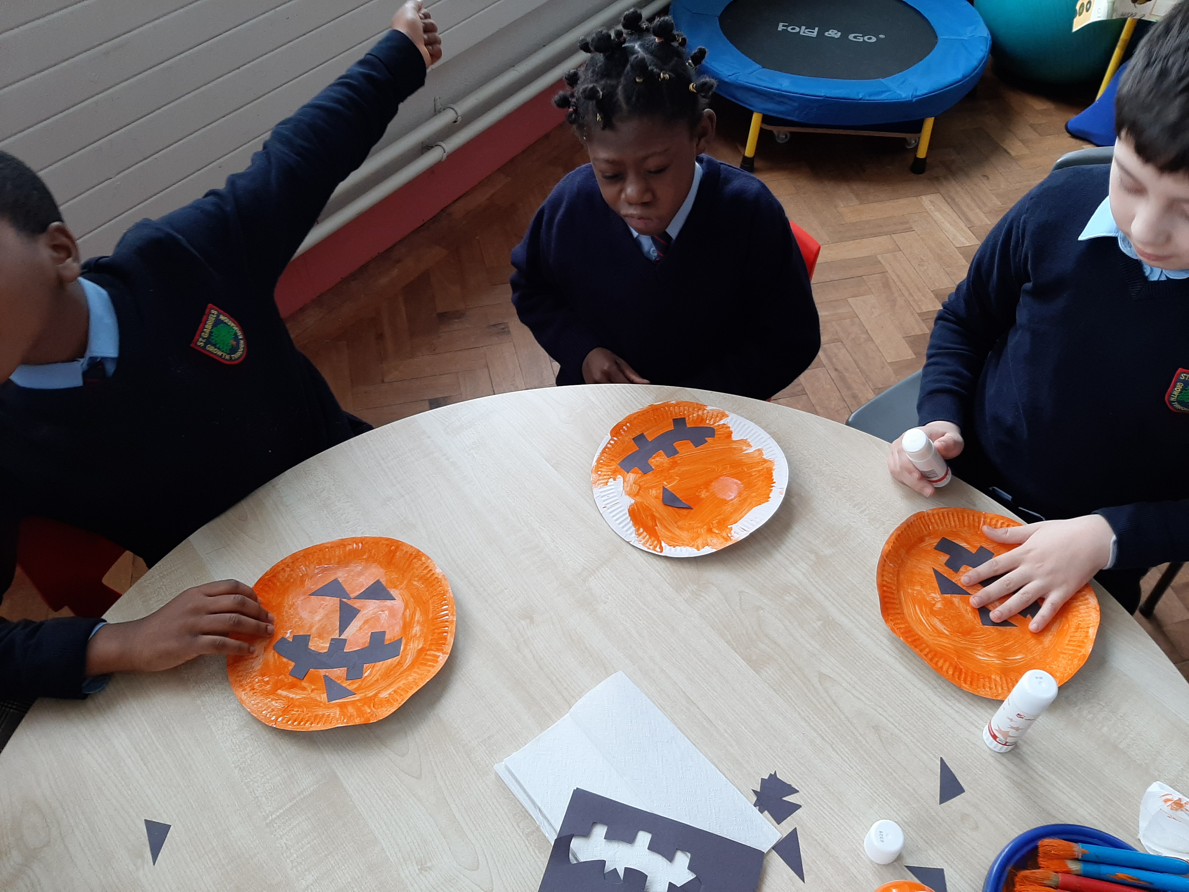 The children created lots of art using paint. They painted and decorated pumpkins. They also used marbles dipped in paint to make fireworks.