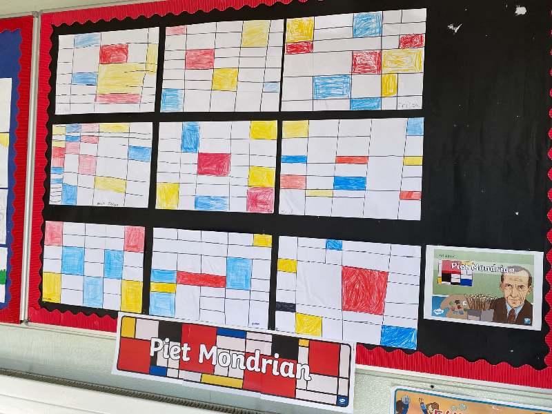 This month our art lessons are all about paint and colour and in maths we are learning about line and 2-D shapes so Piet Mondrian is the perfect artist of the month for us!