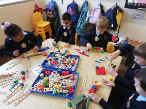 During the month of November Ms. Leonard’s Junior Infant class were learning all about construction sites. We discussed the variety of people who would be involved in the work on a construction site, including architects, crane operators, brick-layers, carpenters, electricians and plumbers.