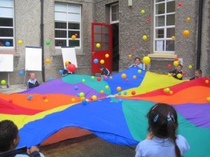 Junior and Senior Infants had a fantastic time at Sports Day 2013. It was a busy day from start to finish with many different activities organised from indoor hockey and water races, to parachute games and bubble blowing.