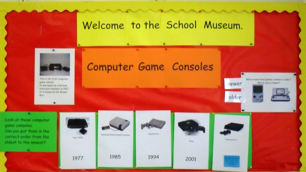 We looked at pictures of some computer game consoles and discussed which ones we thought were older and which ones we thought were newer. We also talked about any differences and similarities between the older ones and the newer ones.