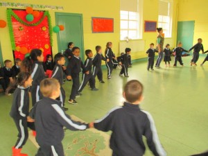 Bhí craic mór againn inniú sa halla ag damhsa le chéile. Junior and Senior Infants had a great time today doing céilí dancing in the P.E. hall as part of Seachtain na Gaeilge. Ms. Deignan very kindly showed us some traditional Irish dancing and there were lots of smiles and laughs as we pointed our toes and danced to the music.