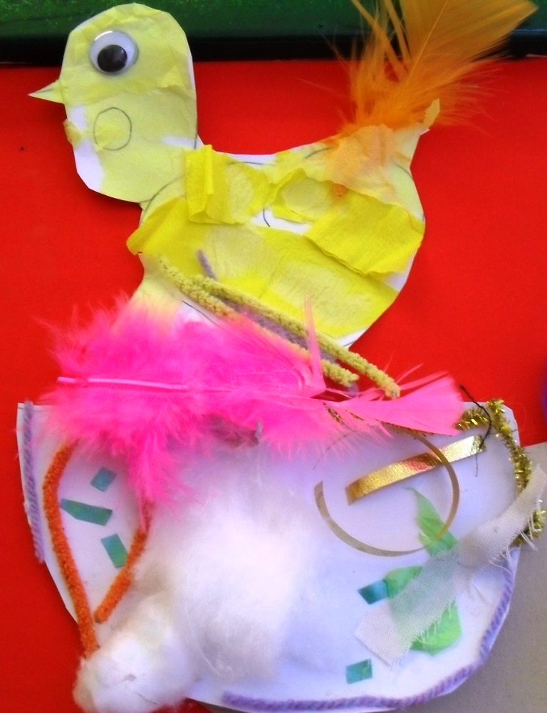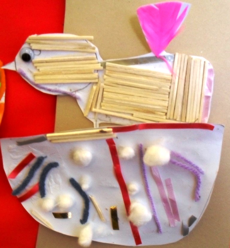 We used a variety of fabrics and materials to make colourful birds, nests and flowers.