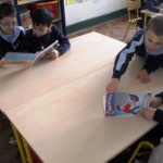 The children in Senior Infants love reading books. Here are some photos of them reading to each other in class.
