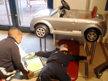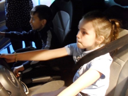 There were lots of exciting and fun things to do there. We played in the post office, the supermarket, the diner and the hospital. We drove a car and played with trains. We built walls in the construction site, climbed up and down a big tunnel and played with puppets too. We even got to read the news on tv!