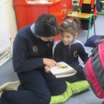 The children from Junior Infants and 5th/6th Class have started another great activity together this term. Junior Infants picked out some books that they enjoy and asked their ‘Buddies’ in Ms. Fahey’s room to read to them.